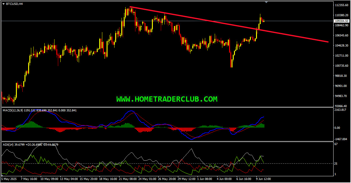 Bitcoin H4(4 Hours) Chart Analysis – Strong Bullish Momentum, Most Recent Downtrend Line Breakout, ADX Indicator