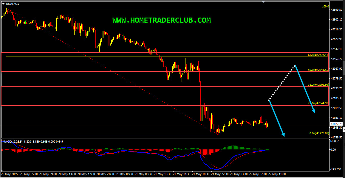 Dow Jones M15(15 Mins) Chart Analysis – Strong Bearish Momentum, Two Key Resistance Zones