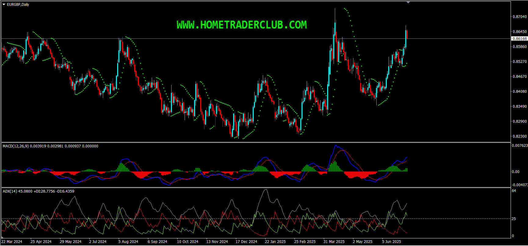EURGBP D1(Daily) Chart Analysis – Strong Bullish Momentum, Parabolic Sar, ADX Indicator