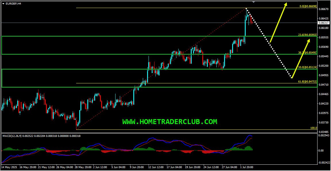 EURGBP H4(4 Hours) Chart Analysis – Strong Bullish Momentum, Two Key Support Zones