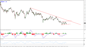 مخطط EURJPY H4 (SPT):على الرسم البياني H4 لدينا سحابة هبوطية ومسح الاتجاه أحمر أيضًا. يبدو كل شيء جيدًا هنا بالنسبة إلى المضاربين على الهبوط ، وبينما يكون السعر أدنى السحابة ويكون مسح الاتجاه باللون الأحمر ، فإننا لا نزال في الاتجاه الهبوطي. حتى يتم الحفاظ على هذه الشروط ، قد نبحث الآن عن عمليات بيع محتملة مع أدلة هبوطية من أجل الانضمام إلى الدببة.