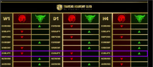 على الماسح الضوئي SPT ، يمكننا أن نرى أن الأطر الزمنية W1 و D1 هبوطية ، وهذا يعني في الأساس أن المؤشر اكتشف أن أحدث نقطة تأرجح على هذه الأطر الزمنية كانت عالية ، ومنذ ذلك الحين كان الزخم هبوطي. نظرًا لأن هذين الإطارين الزمنيين هابطان ، فقد نبحث عن عمليات بيع محتملة مع أدلة هبوطية بينما تظل هذه الشروط قائمة.