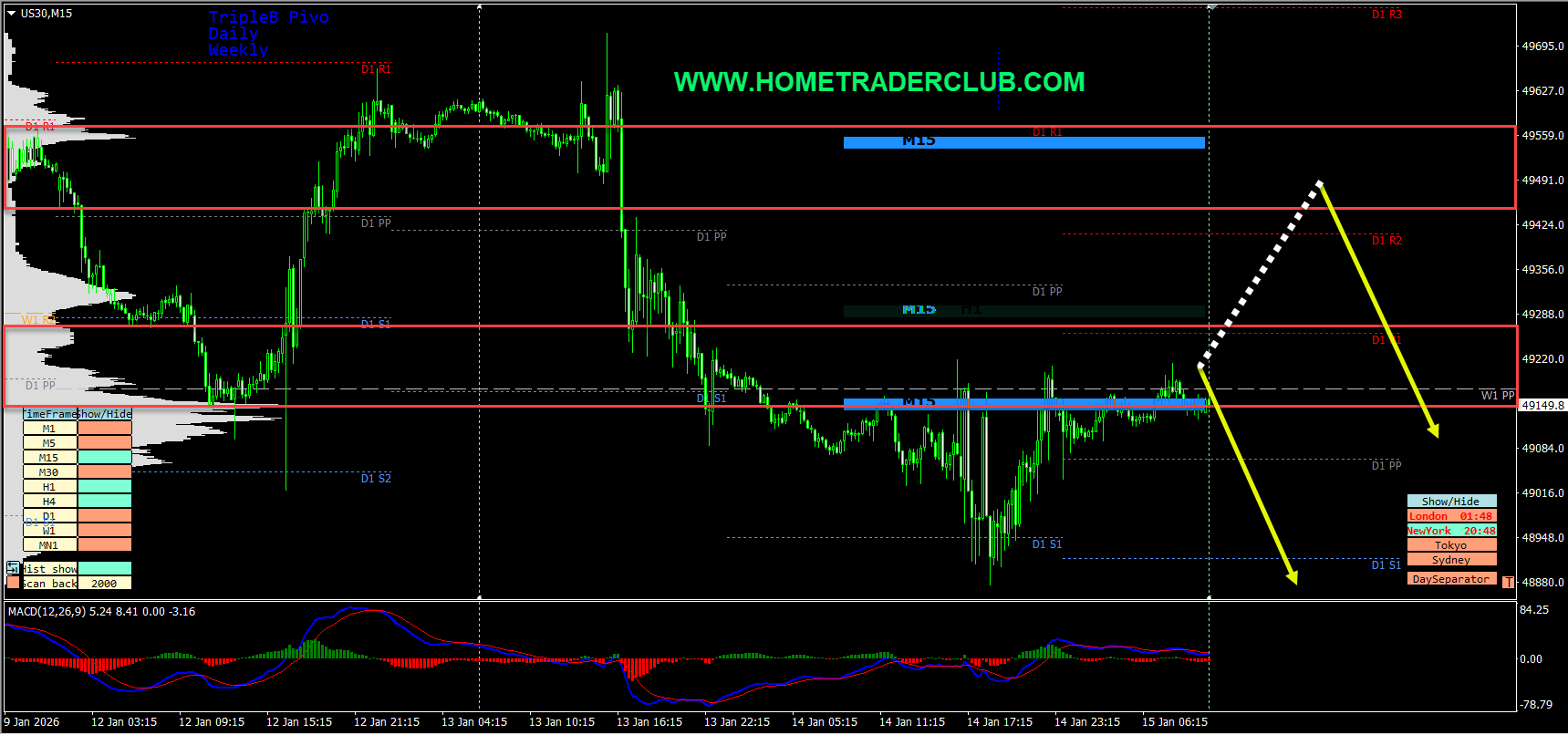 Dow Jones M15(15 Mins) Chart Analysis