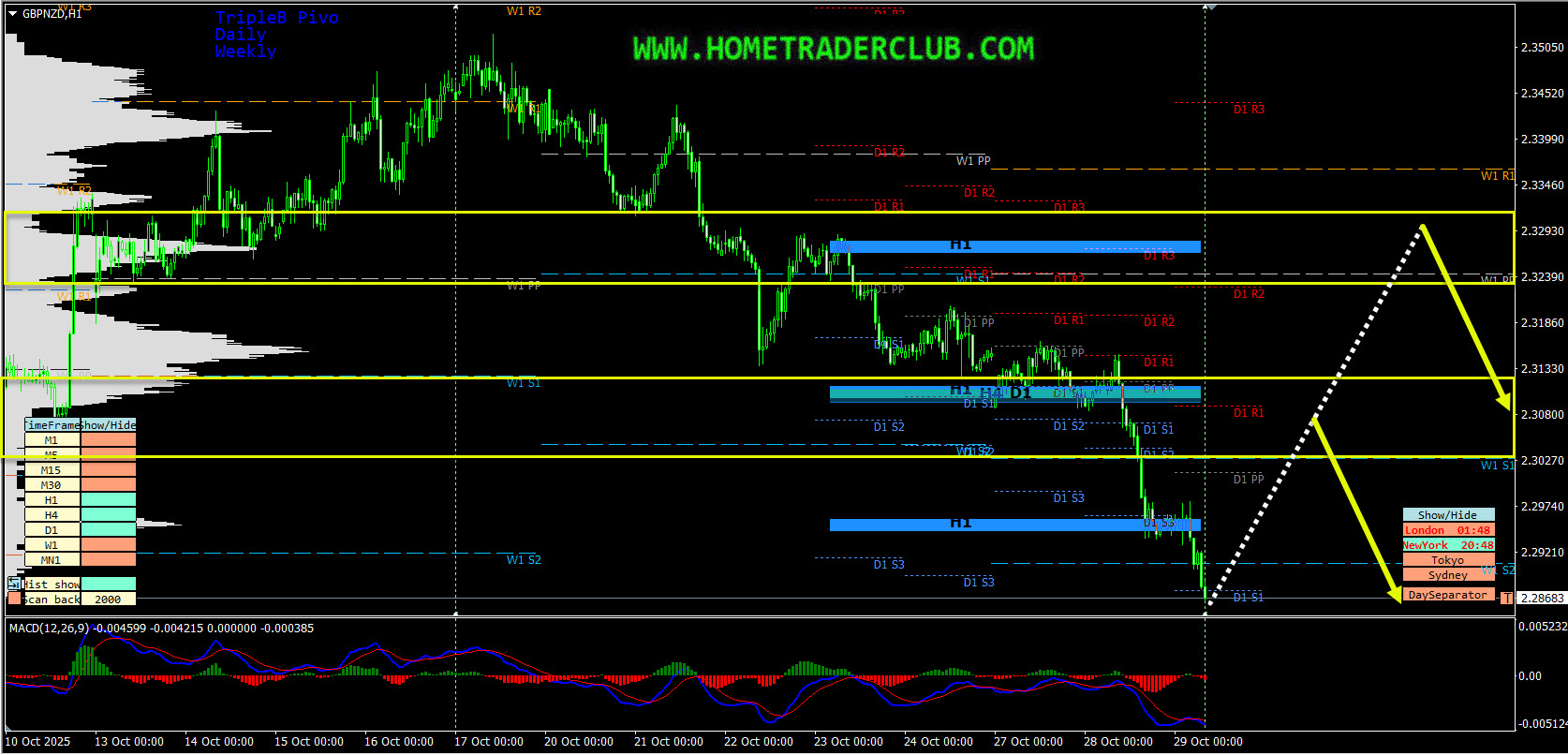 GBPNZD H1(1 Hour) Chart Analysis – Strong Bearish Momentum, Two Key Resistance Zones