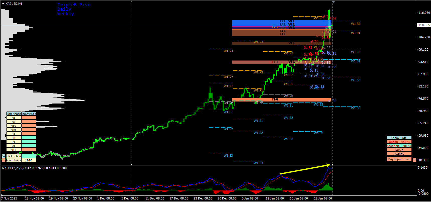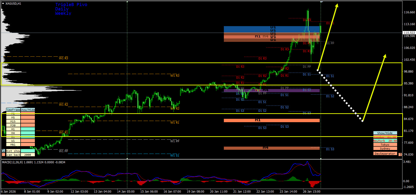 On the H1 chart, we have a strong bullish momentum and also currently it looks like a correction is happening. So everything looks good for the bulls here as well. In addition to this, we have two key support zones that has formed based on the volume profile zones of the KTLI indicator and the Triple B Pro pivot levels. Until these two key support zones shown in the image below (marked in yellow) holds my short term view remains bullish here and I expect the price to move higher further after retraces.