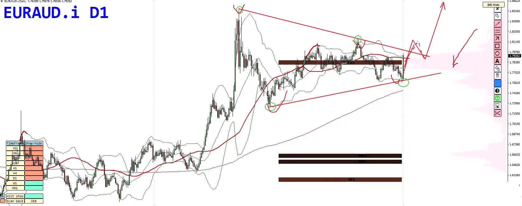The EUR/AUD is forming a clean daily range, testing the upper boundary multiple times. The structure shows four touches on resistance — an indication of potential breakout pressure building up.