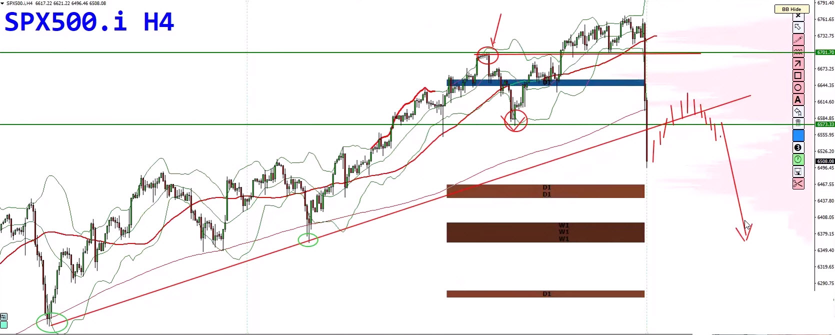 The S&P 500 reacted sharply to last week’s tariff news on Chinese minerals, shaking global markets — including indices and cryptocurrencies. The rising trendline is now broken, signaling potential weakness.