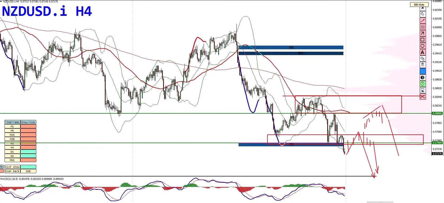 The New Zealand Dollar remains under strong bearish pressure, maintaining its lower highs and lower lows pattern. While the 4-hour chart shows a slight slowdown, the daily trend remains bearish.