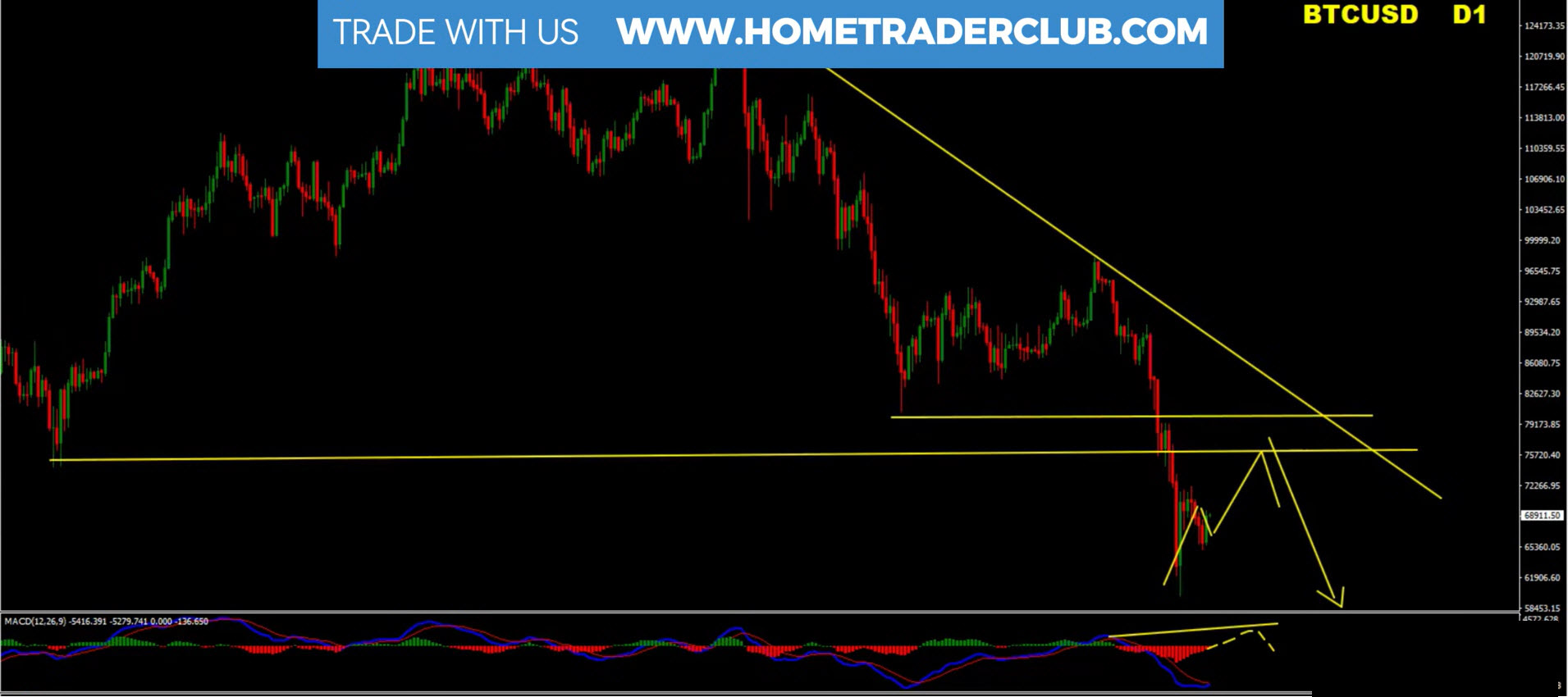 Price has broken a key support zone, which is now acting as resistance.
