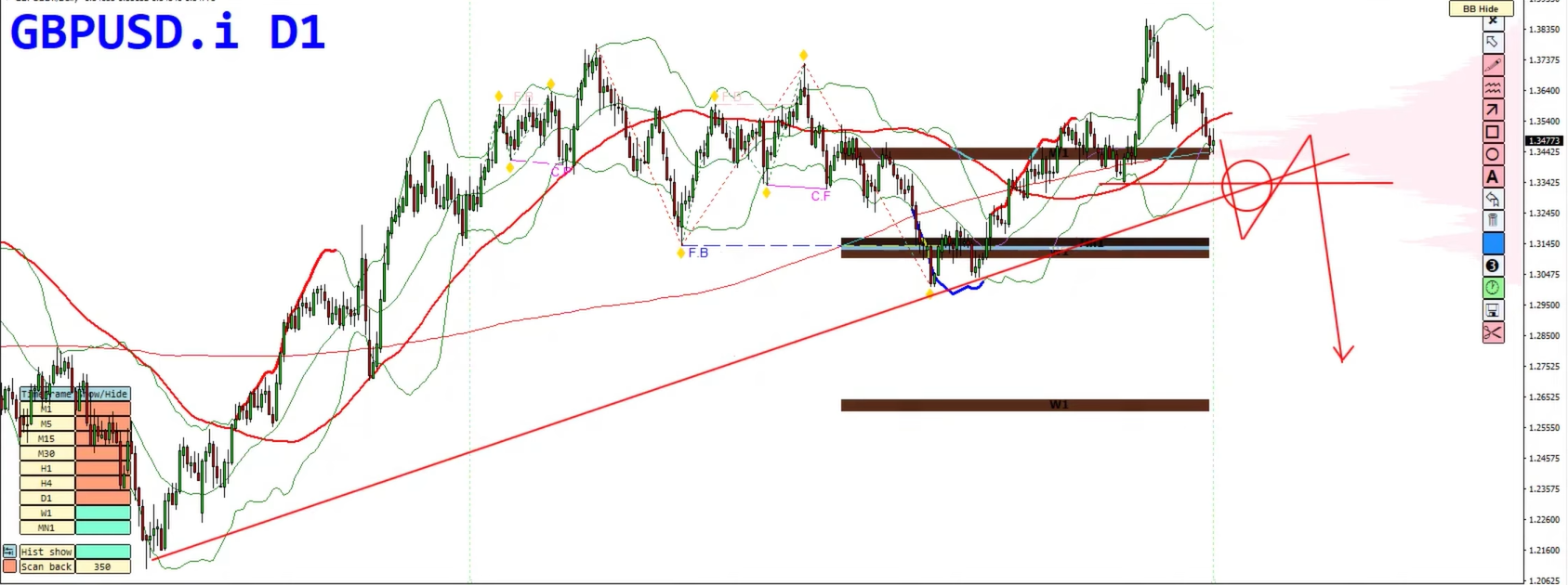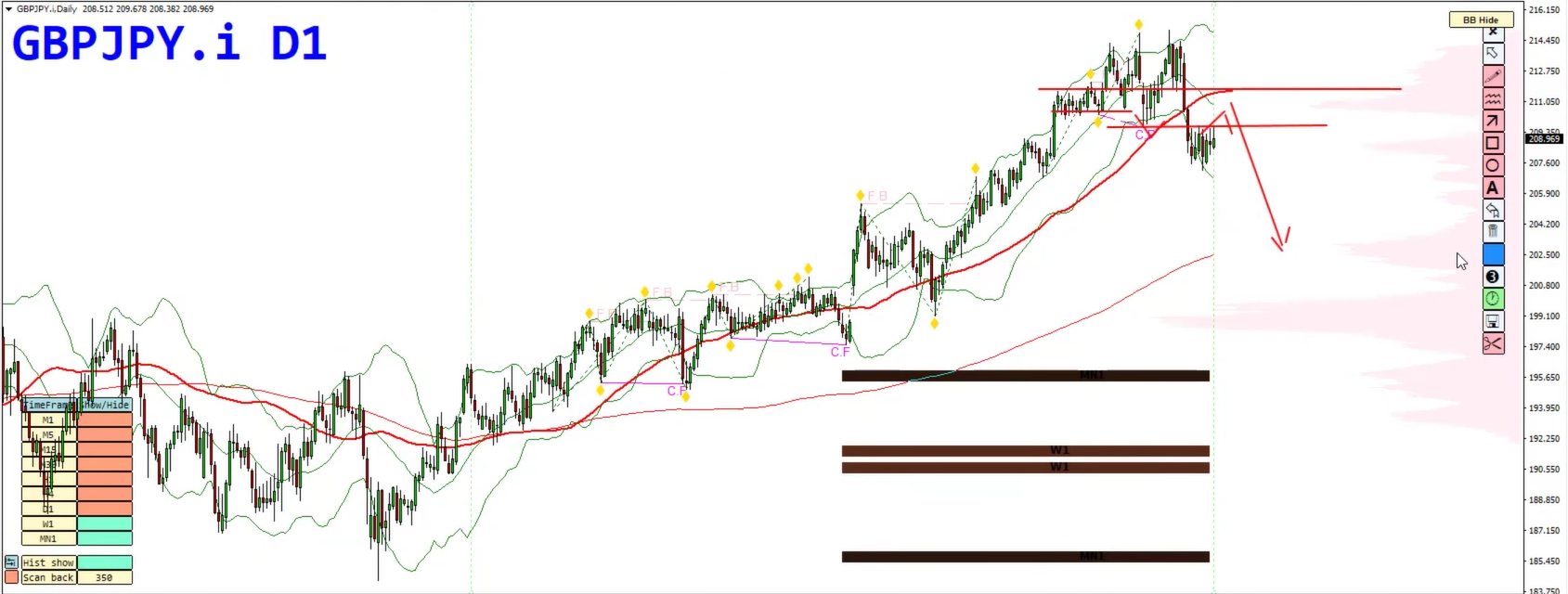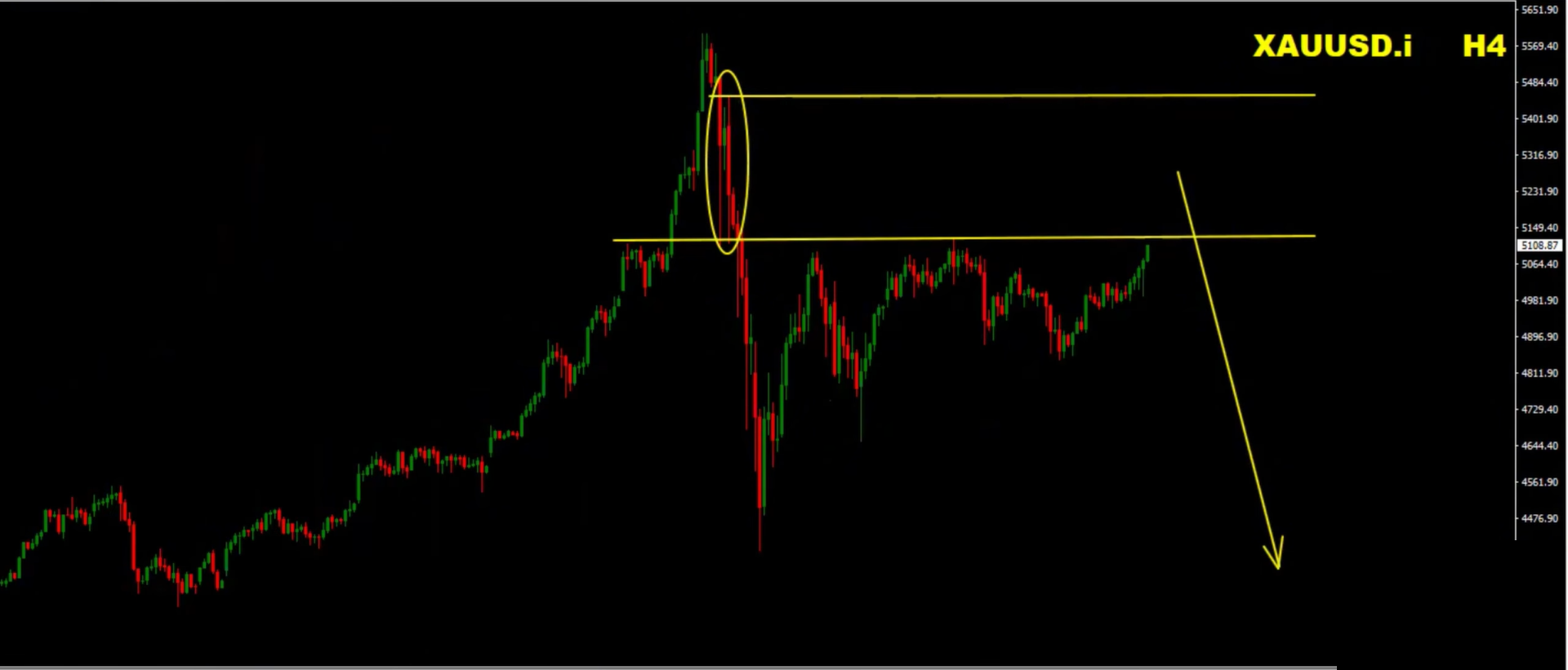 The pair printed a strong bearish engulfing candle, signaling potential distribution at the top.