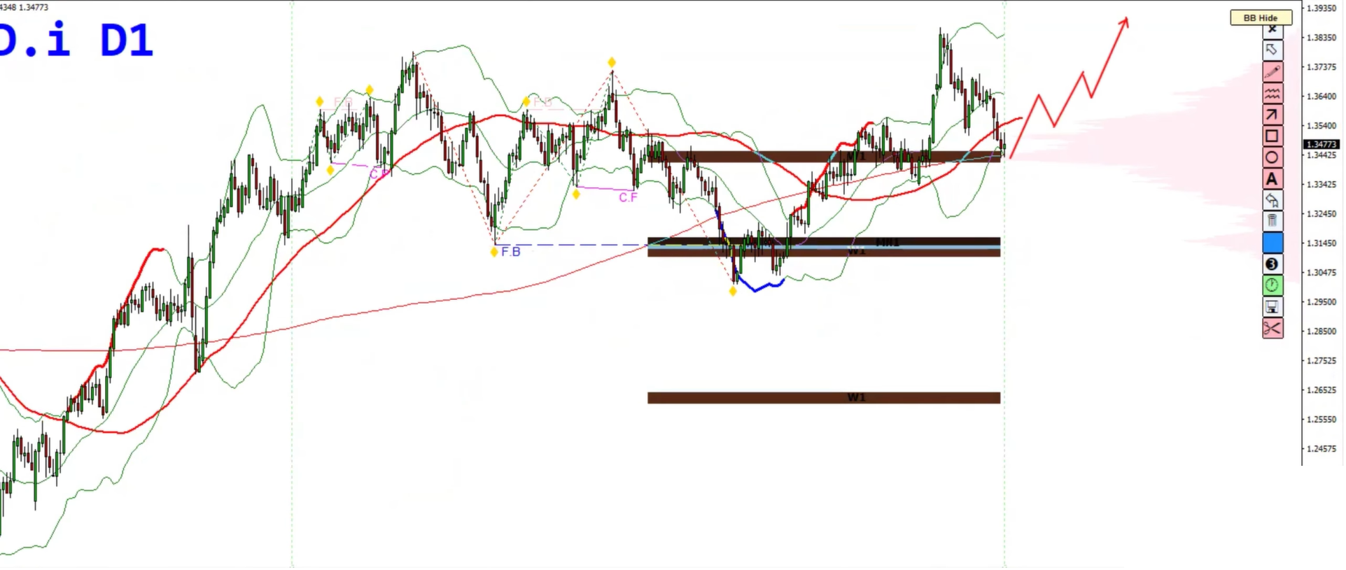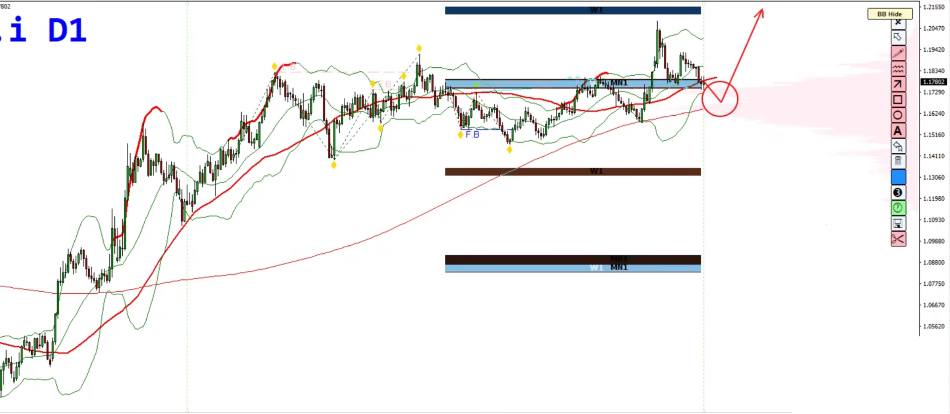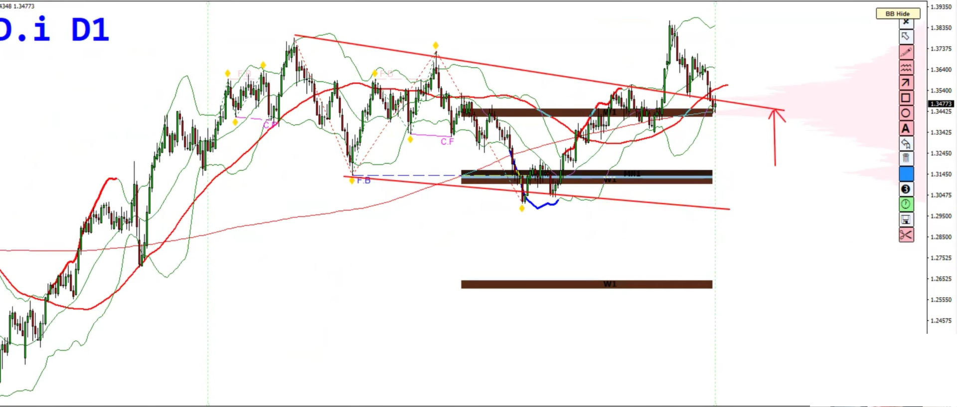 The pair printed a strong bearish engulfing candle, signaling potential distribution at the top.