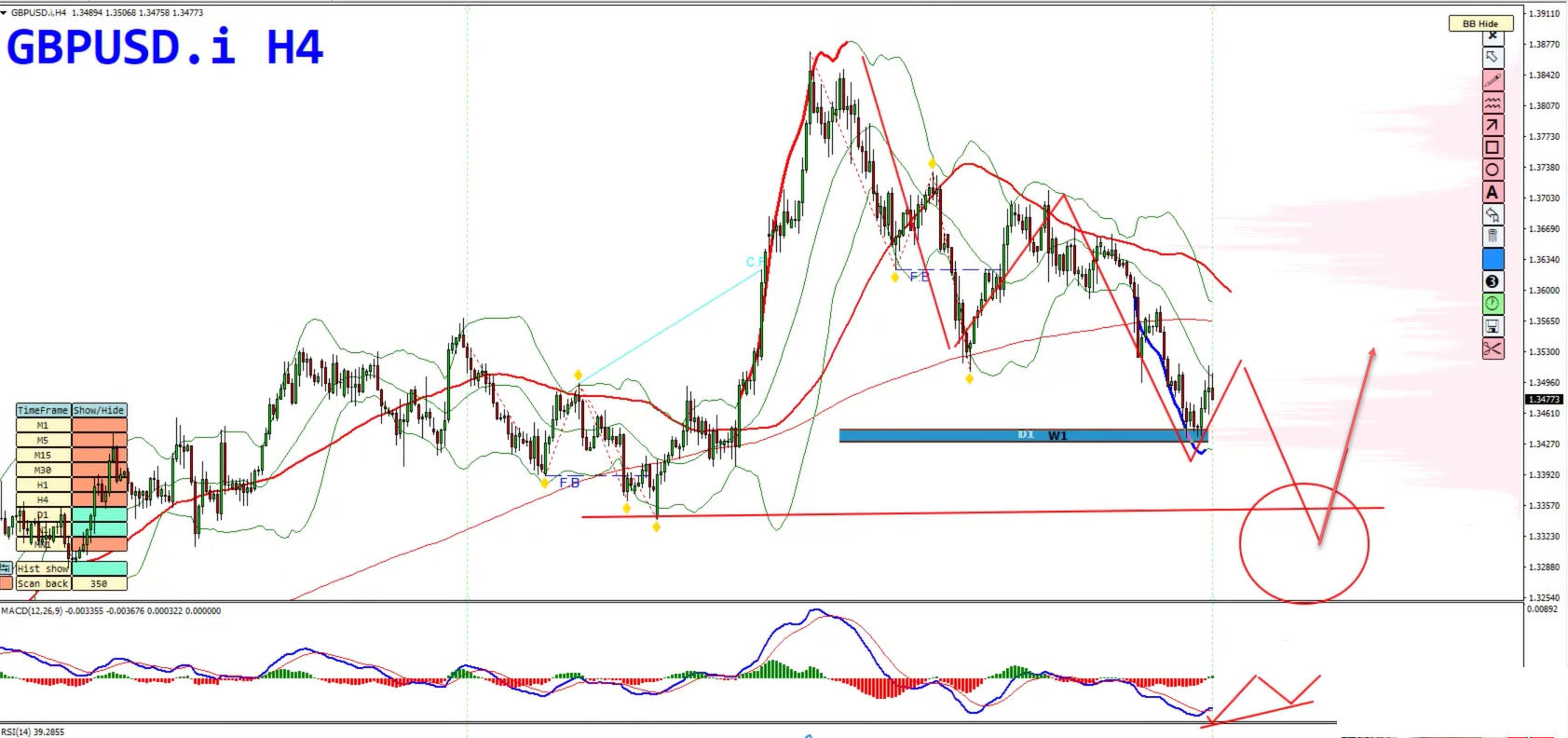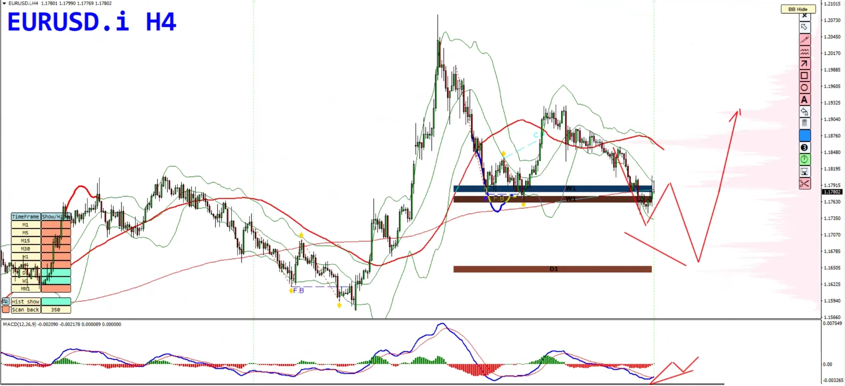 On the H4 chart, look for bullish divergence (lower lows on price, higher lows on MACD) as a potential confirmation for long setups.