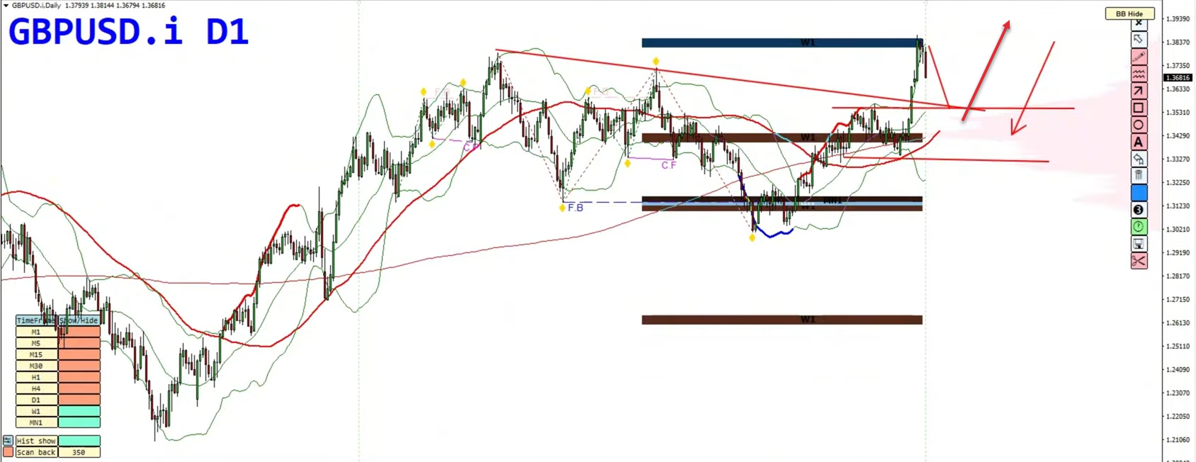 From a weekly perspective, EUR/USD has already cleared a major supply zone, which suggests the previous bullish cycle may be approaching maturity. However, price action does not yet confirm a full trend reversal.