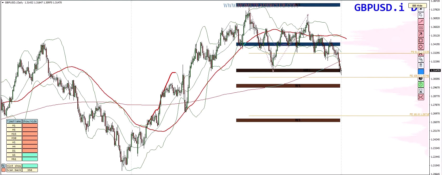 Currently, price action is hovering around the 100% Fibonacci extension zone near 1.31, a level of high confluence.