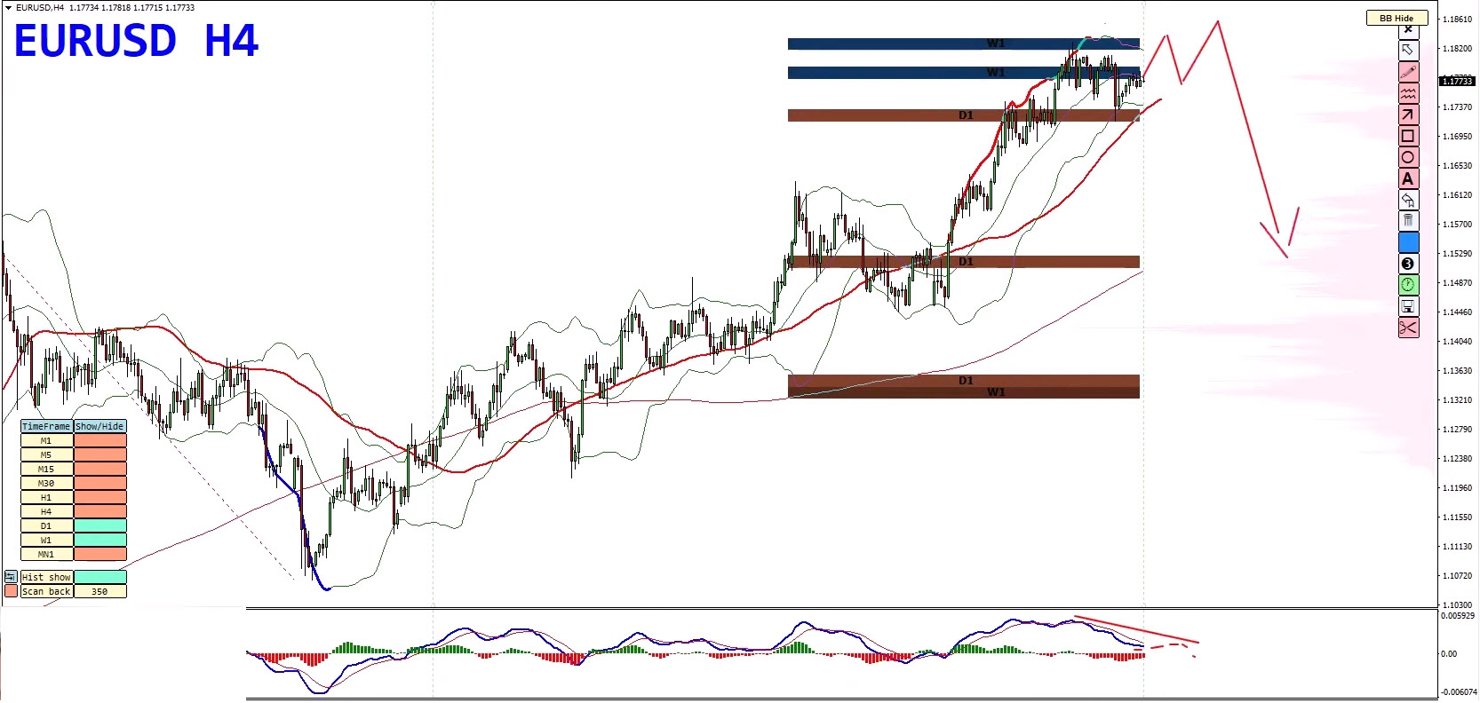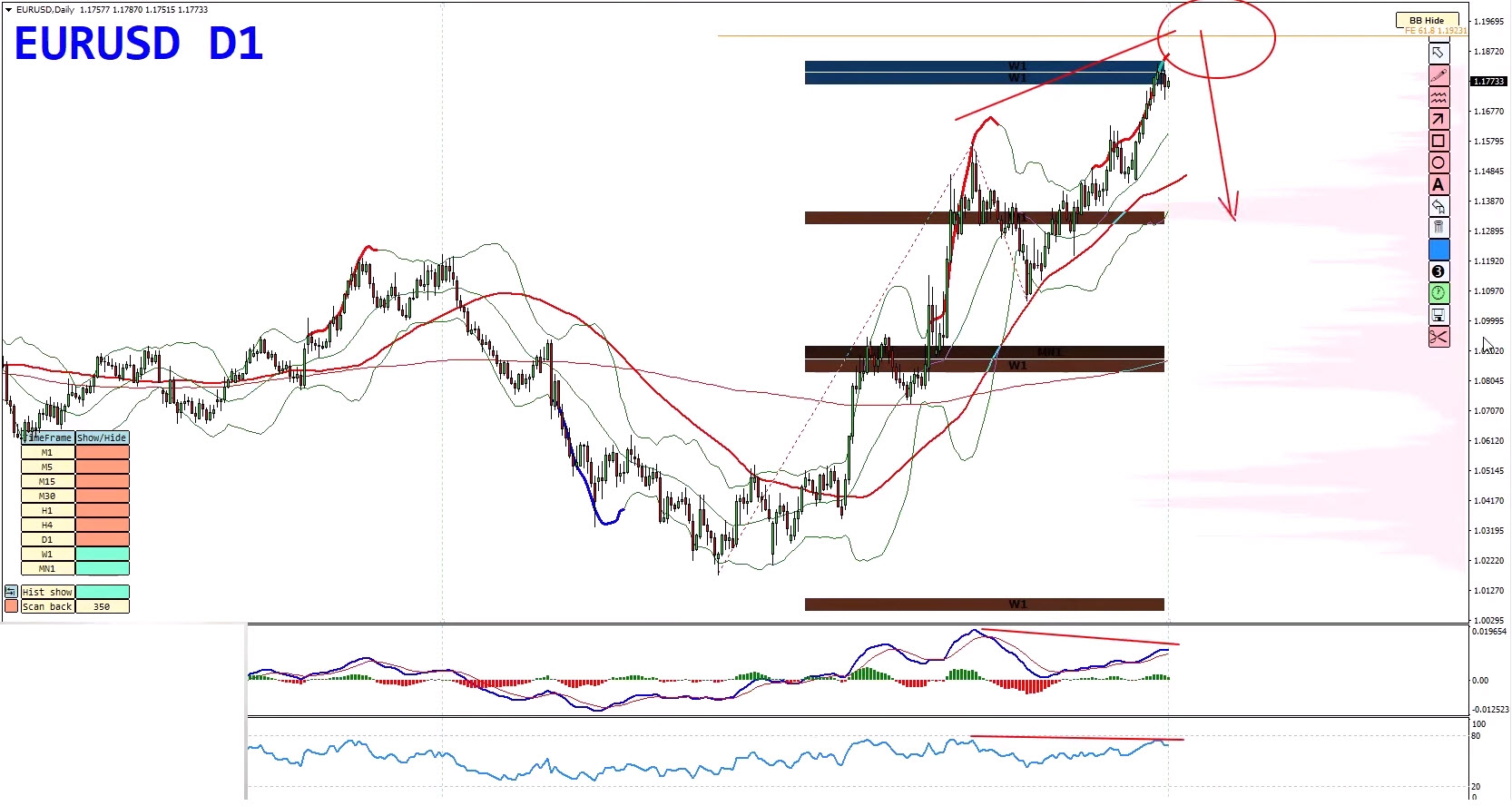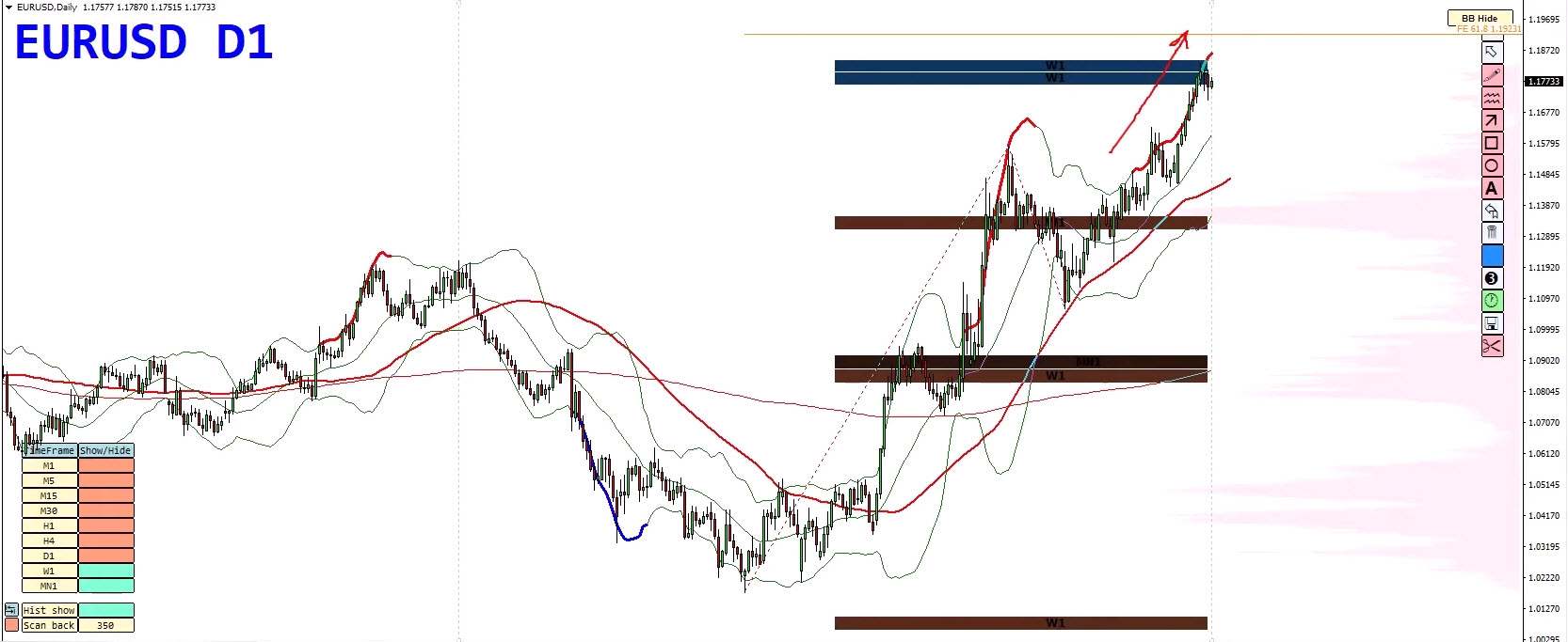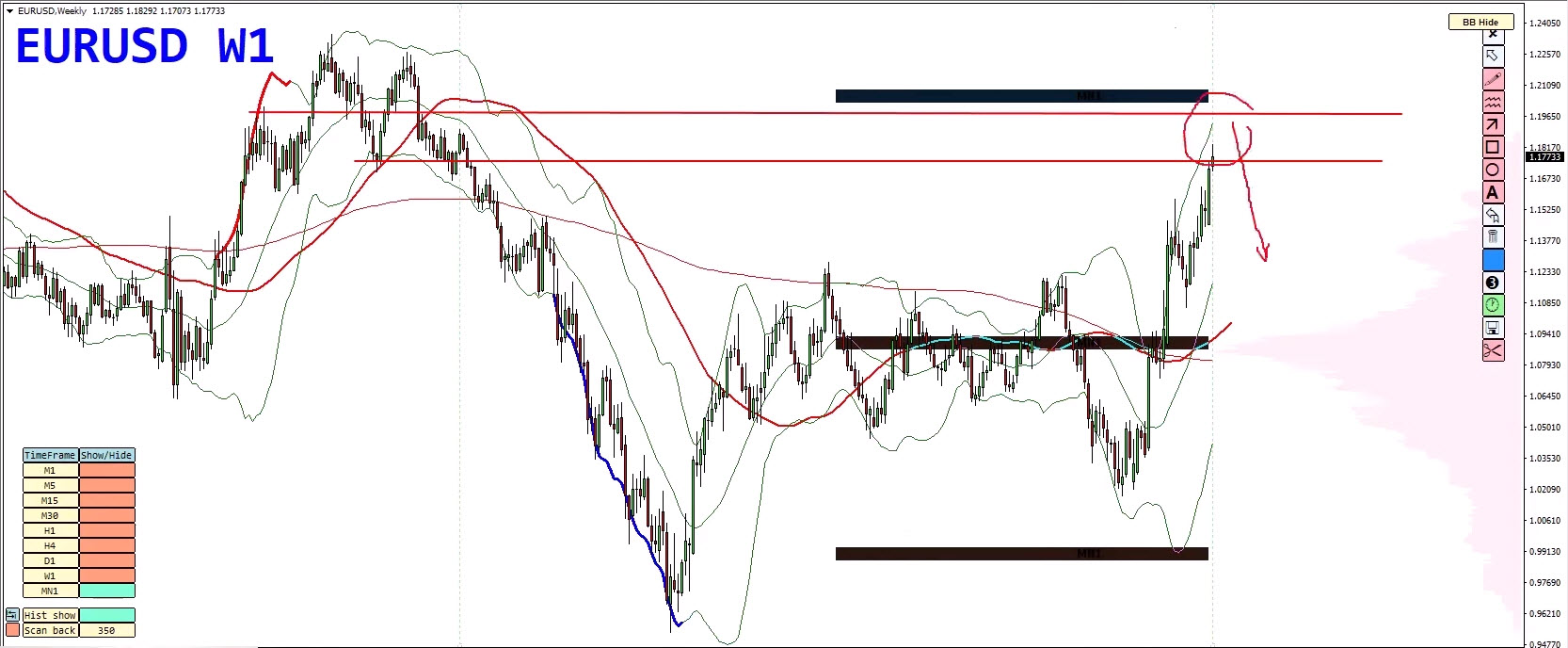 - Weekly chart shows strong resistance at the 1.18–1.20 zone (broken support turned resistance).
