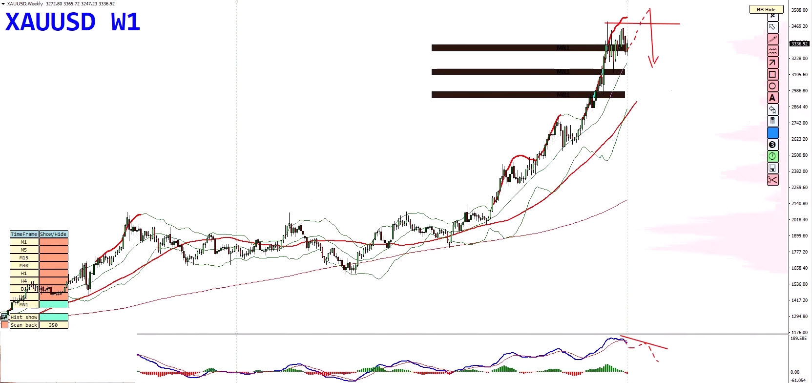 - Gold attempts one more fake breakout to complete weekly divergence before dropping.