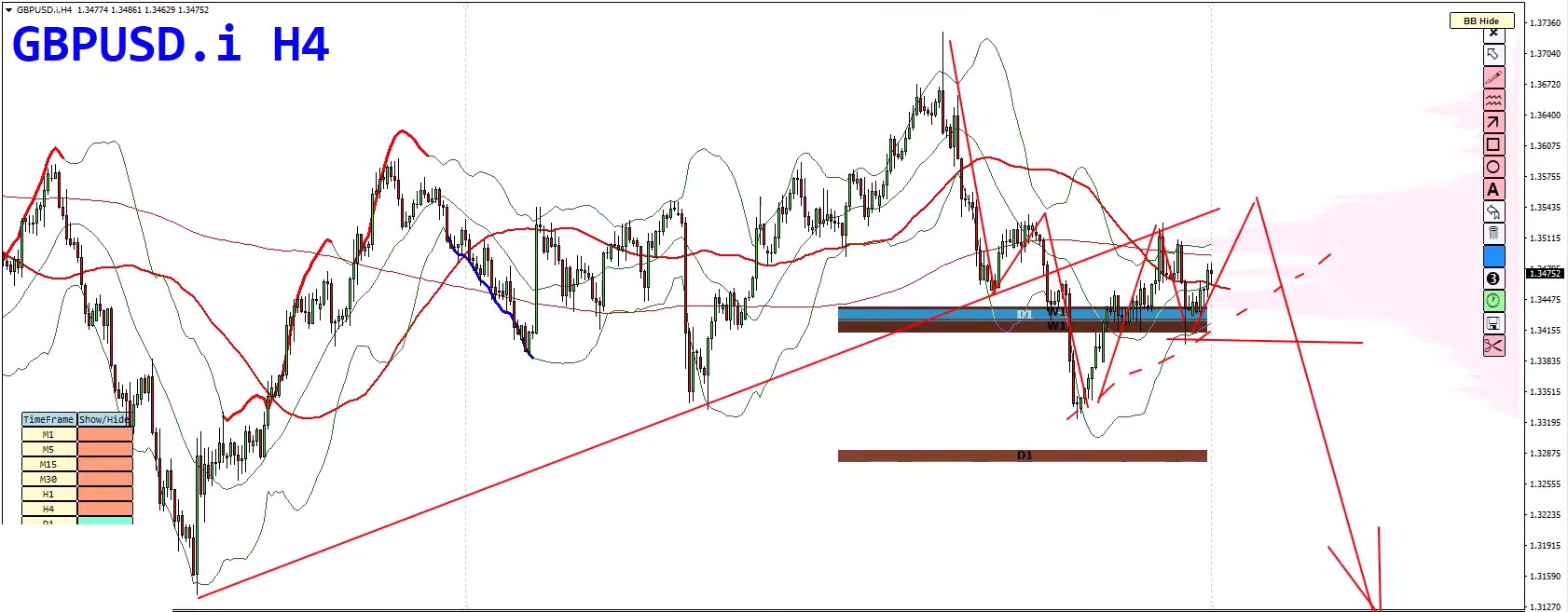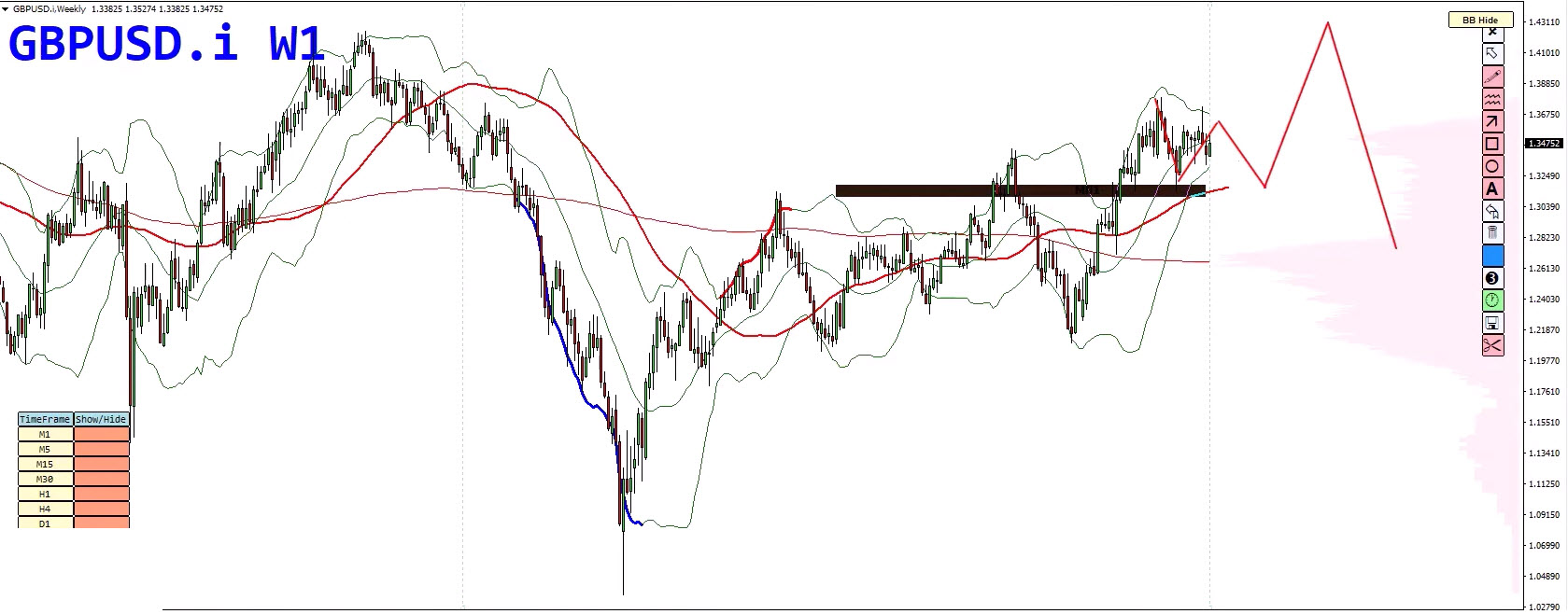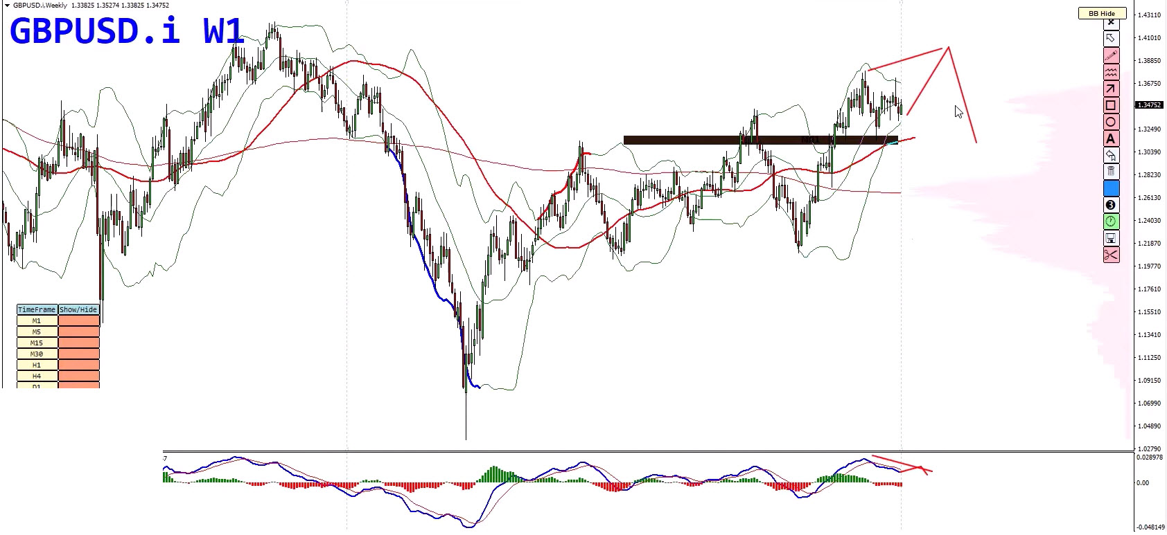 GBP/USD presents a balanced scenario, with both bullish and bearish outcomes in play. On the weekly chart, the cycle is not yet completed, meaning longer-term bullish pressure is still possible. Both the scenarios shown below are possible here.