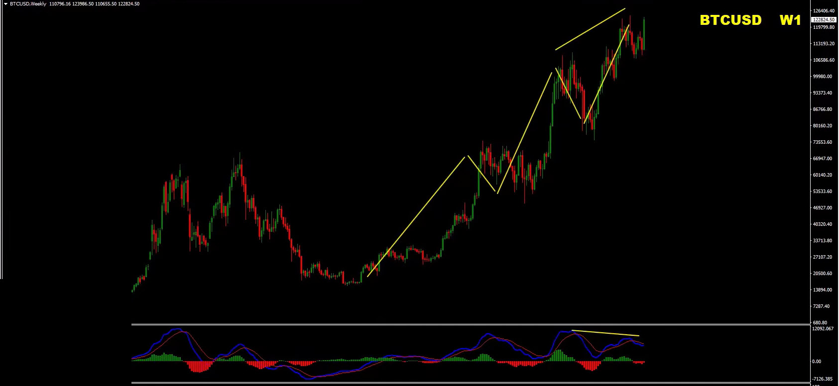 Despite short-term divergences, the weekly chart trend remains bullish, with no clear sequence of lower highs or lows.