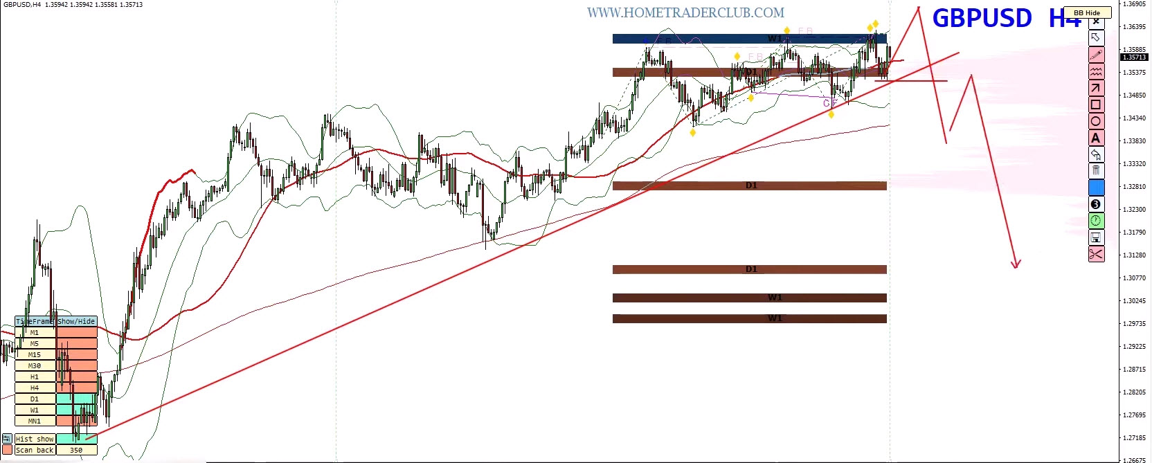 Final Push ➝ False Breakout ➝ Trendline Break ➝ Drop to 1.35–1.32