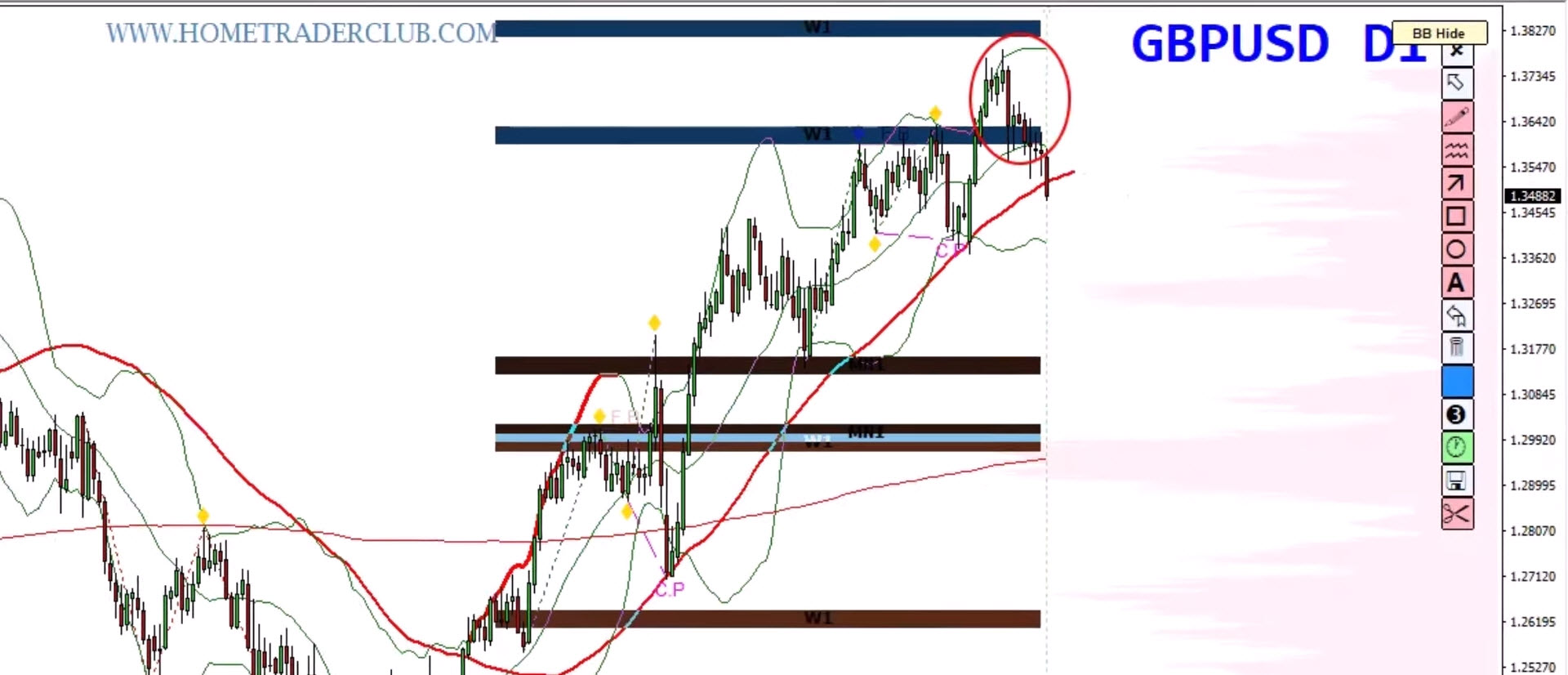 Our custom Bollinger Band shows the price stalling around the supply zone (last high + broken support), creating strong short-term resistance.