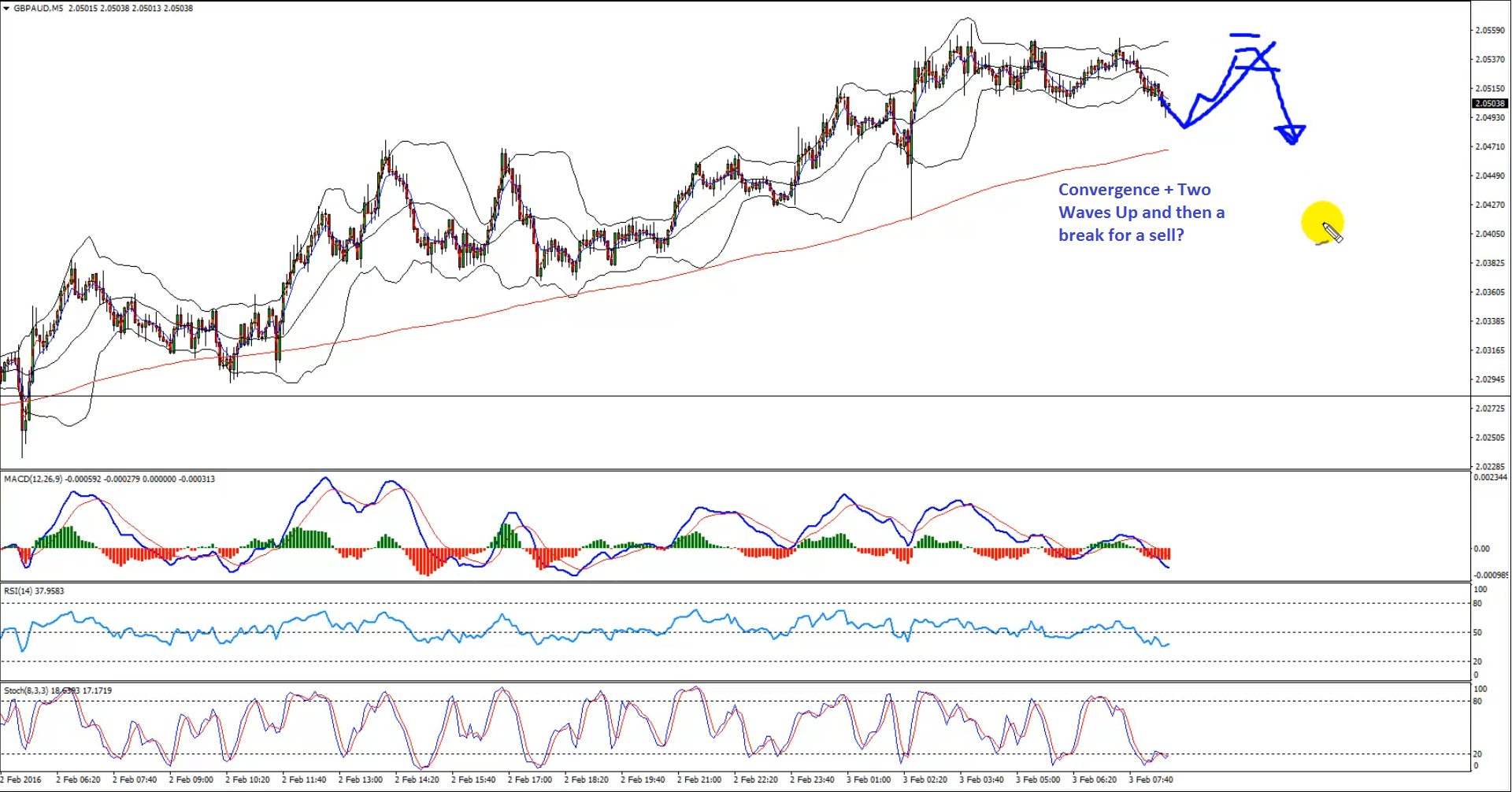 M5 – If the GBPAUD pair forms a convergence on the 5-min or 15-min chart, trades higher in two waves, forms a trend line and breaks it, then we may look to enter a sell trade as highlighted in the chart.