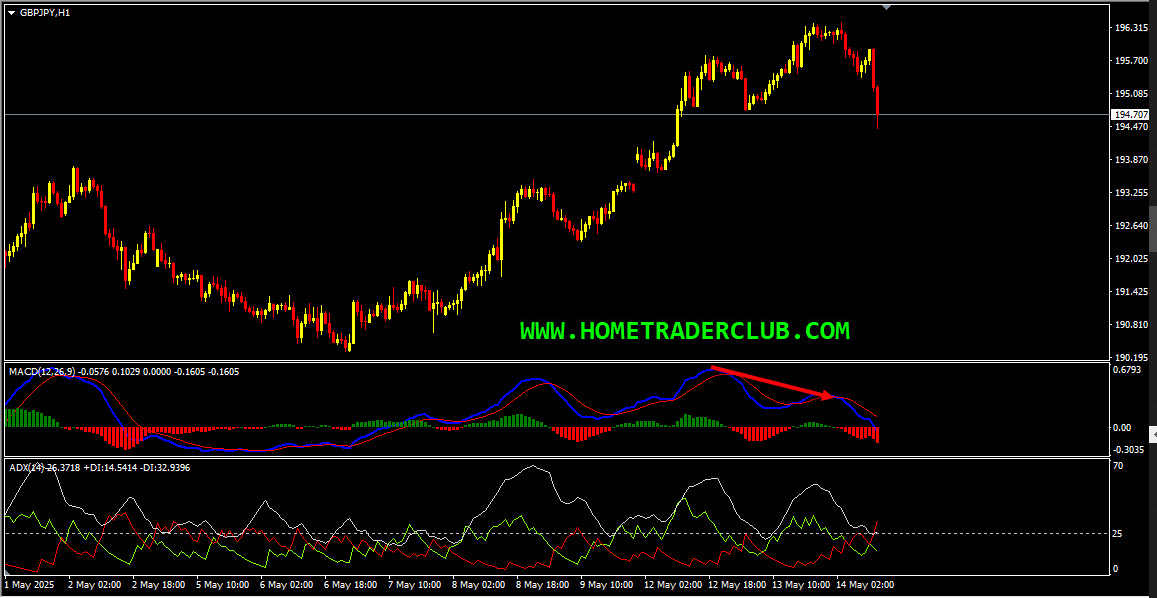 GBPJPY H1(1 Hour) Chart Analysis – Bearish Divergence, ADX Indicator
