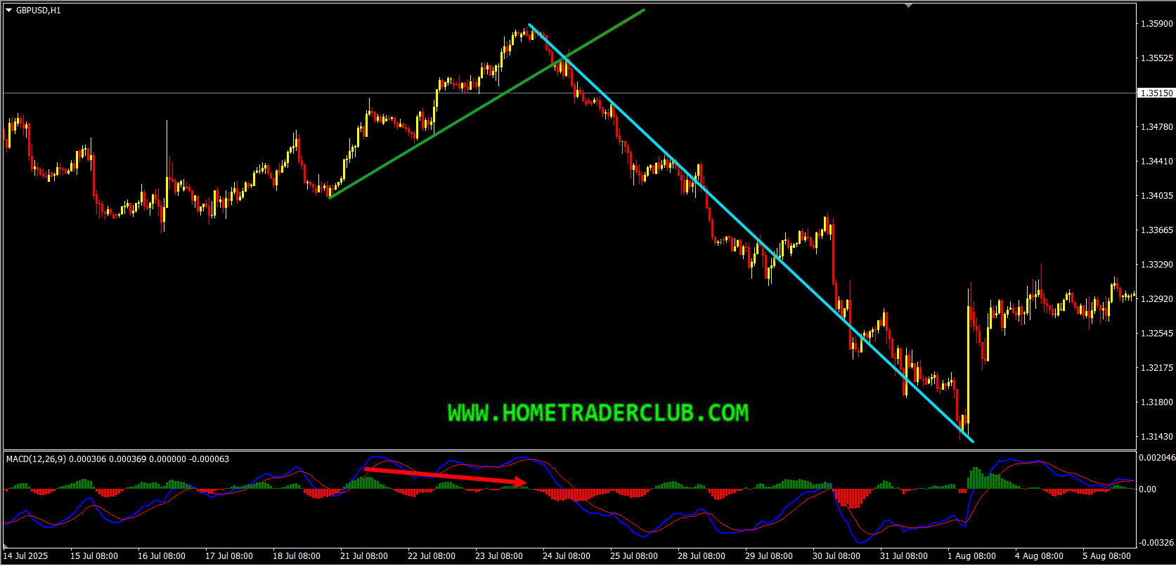 On the H1 chart, the market provided us with various facts supporting the bearish view. The price which was moving higher created a bearish divergence between the first high that has formed at 1.35095 and the second high that has formed at 1.35878 based on the MACD indicator, which we may consider as evidence of bearish pressure. The price then moved lower and broke below the most recent uptrend line. We may consider these as facts provided by the market supporting the bearish view and also there we no signs opposing this bearish view. Then as you can see in the image below how the price moved lower further and provided a fantastic move to the downside.