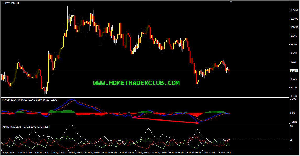 Litecoin H4(4 Hours) Chart Analysis – Strong Bearish Momentum, Lower Lows, ADX Indicator