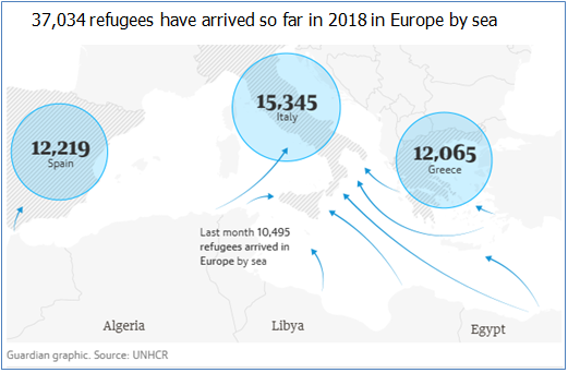 The UNHCR says Spain has welcomed 9,500 irregular migrants so far this year, Greece 12,000 and Italy 15,300. There are some underlying factors that have led to the migration of over 1.8 million migrants since 2014 and still have not gone away.
