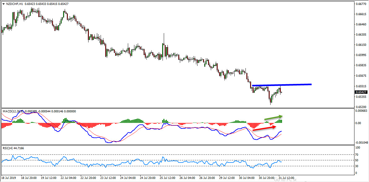 على الرسم البياني H1 ، هناك تباعد تصاعدي نشأ والذي قد نعتبره دليلًا على وجود ضغط صعودي. إذا ارتفع السعر إلى أعلى واخترق أعلى مستوى موضح في لقطة الشاشة ، فقد نبدأ بعد ذلك في البحث عن التراجعات والشراء مع المزيد من الأدلة الصعودية.