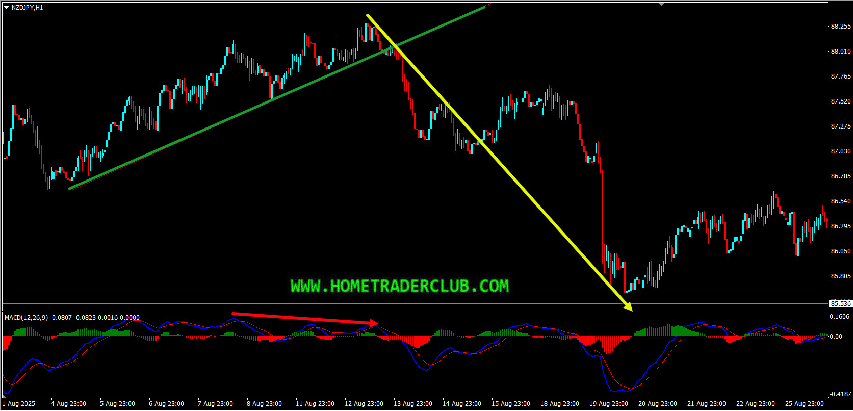 On the H1 chart, the market provided us with various facts supporting the bearish view. The price which was moving higher created a bearish divergence between the first high that has formed at 88.118 and the second high that has formed at 88.337 based on the MACD indicator, which we may consider as evidence of bearish pressure. The price then moved lower and broke below the most recent uptrend line. We may consider these as facts provided by the market supporting the bearish view and also there we no signs opposing this bearish view. Then as you can see in the image below how the price moved lower further and provided a wonderful move to the downside.