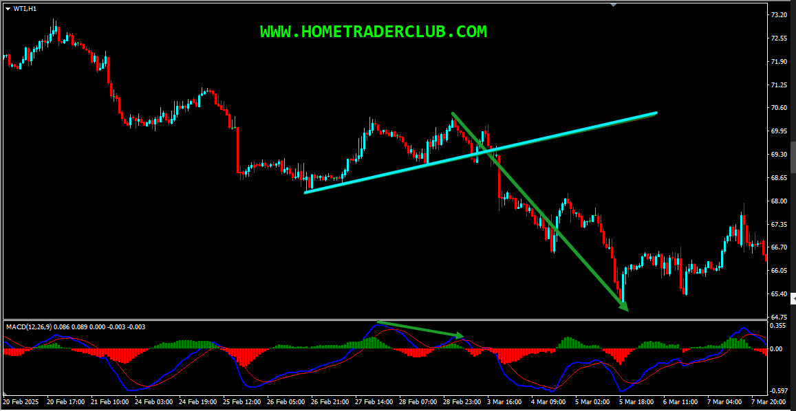 On the H1 chart, the market provided us with various facts supporting the bearish view. The price which was moving higher created a bearish divergence between the first high that has formed at 70.34 and the second high that has formed at 70.38 based on the MACD indicator, which we may consider as evidence of bearish pressure. The price then moved lower and broke below the most recent uptrend line. We may consider these as facts provided by the market supporting the bearish view and also there were no signs opposing this bearish view. Then as you can see in the image below how the price moved lower further and provided a wonderful move to the downside.