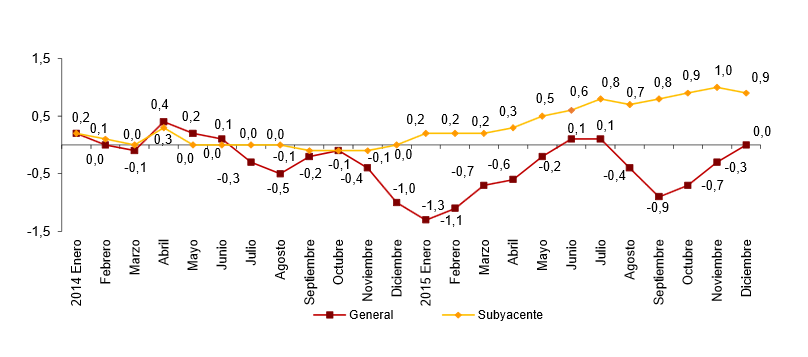 However, when we look at the yearly change, then there no change in the CPI in December 2015, compared with the same month a year ago. During the last time there was a decline of 0.3%.