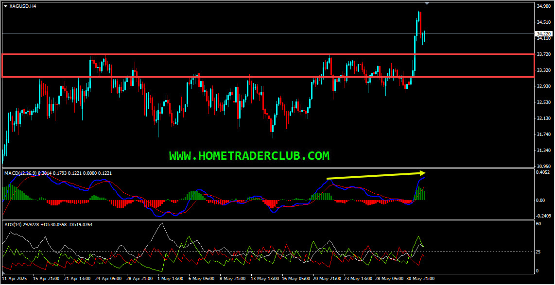 Silver H4(4 Hours) Chart Analysis – Higher Highs, ADX Indicator, Resistance Breakout