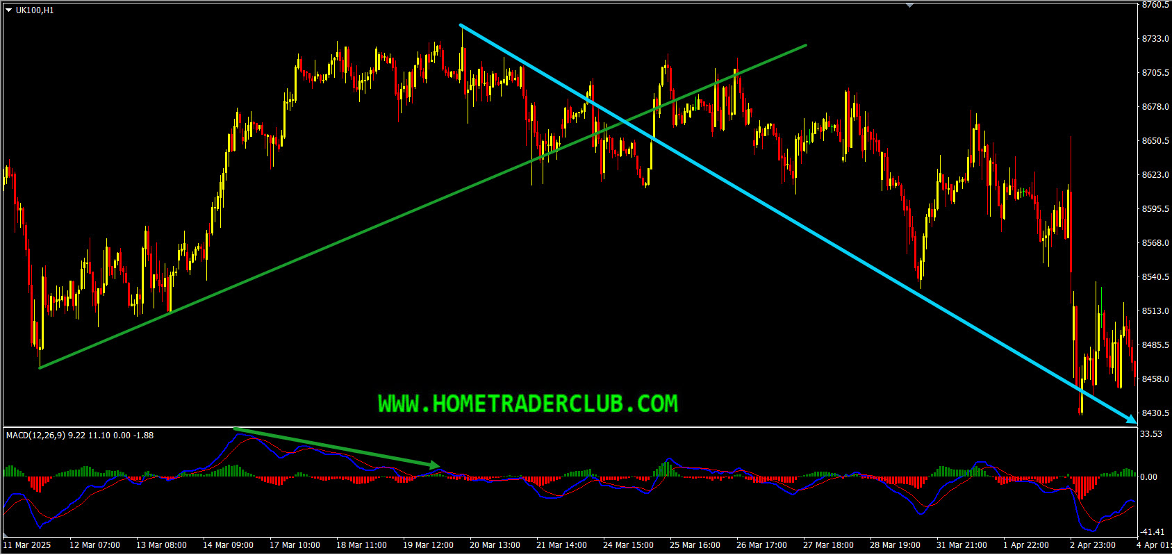 On the M15 chart, the market provided us with various facts supporting the bearish view. The price which was moving higher created a bearish divergence between the first high that has formed at 8676.9 and the second high that has formed at 8744.5 based on the MACD indicator, which we may consider as evidence of bearish pressure. The price then moved lower and broke below the most recent uptrend line. We may consider these as facts provided by the market supporting the bearish view and also there we no signs opposing this bearish view. Then as you can see in the image below how the price moved lower further and provided a wonderful move to the downside.