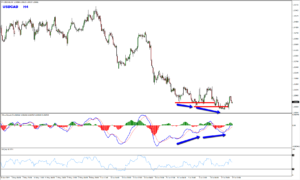 على الرسم البياني H4 ، تسبب السعر الذي كان يتحرك في انخفاضين في اختراقين زائفين بالإضافة إلى ذلك ، كان لدينا أيضًا تباينان صعوديان قد تشكلا وقد نعتبره دليلًا على الضغط الصعودي.