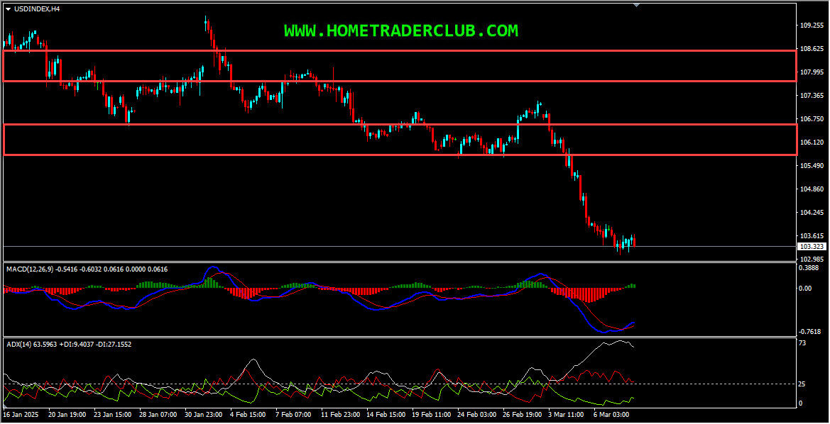 US Dollar Index – My idea here was “Looking at the H4 chart, we could see that the price which is moving lower has created lower lows based on the MACD indicator, which is a sign of gaining momentum toward the bearish side. In addition to this, the ADX indicator gave a bearish signal here at the cross of -DI (red line) versus +DI (green line) and the main signal line (silver line) reads value over 25 which we may consider as yet another evidence of bearish pressure. Also, we had two strong support zones that has formed and the price which was moving lower has broken below these zones and is holding below them, we may consider this as yet another evidence of bearish pressure. Currently, these strong support zones are acting as strong resistance zones for us. Until these two strong resistance zones (marked in red) shown in the image below hold my short term view remains bearish here and I expect the price to move lower further after pullbacks”.