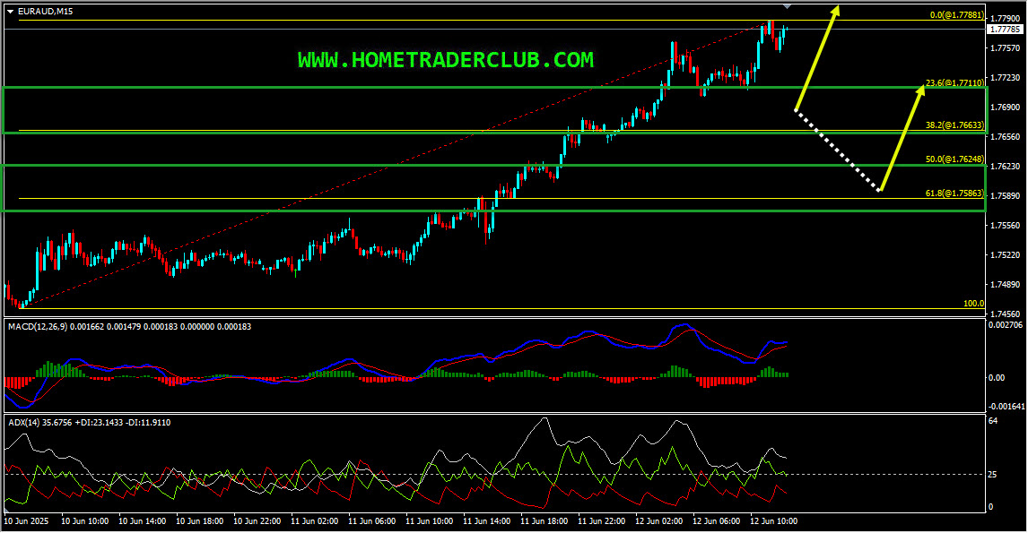 EURAUD – My idea here was “On the M15 chart, we have a strong bullish momentum and also currently there are no signs opposing this short term bullish view. Also while measuring this strong bullish move we have two key support zones that has formed. The first key support zone is formed based on the 23.6%(1.77110) – 38.2%(1.76633) Fibonacci retracement levels of the strong bullish move. The second key support zone is formed based on the 50%(1.76248) – 61.8%(1.75863) Fibonacci retracement levels of the strong bullish move. Until both these key support zones shown in the image below (marked in green) holds my short term view remains bullish here and I expect the price to move higher further after retraces”.