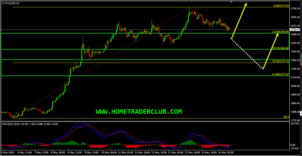 Ethereum – My idea here was “On the H1 chart, we have a strong bullish momentum and also currently there are no signs opposing this short term bullish view. Also while measuring this strong bullish move we have two key support zones that has formed. The first key support zone is formed based on the 23.6%(2504.86) – 38.2%(2360.68) Fibonacci retracement levels of the strong bullish move. The second key support zone is formed based on the 50%(2244.15) – 61.8%(2127.62) Fibonacci retracement levels of the strong bullish move. Until both these key support zones shown in the image below (marked in green) holds my short term view remains bullish here and I expect the price to move higher further after retraces”.