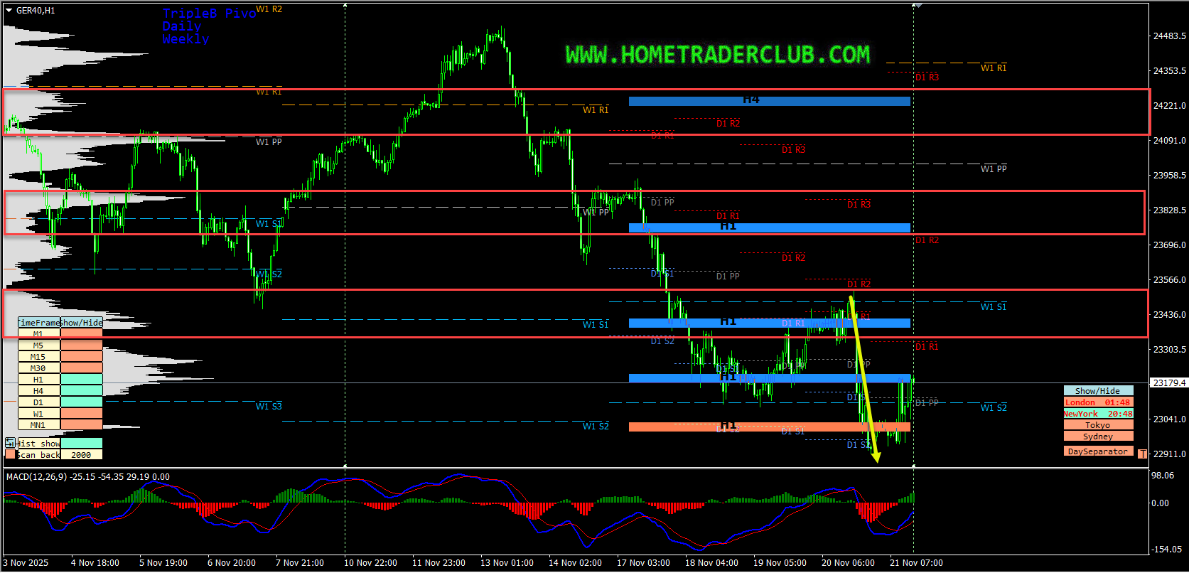 Dax – My idea here was “On the H1 chart, we have a strong bearish momentum and also currently there are no signs opposing this short term bearish view. So everything looks good for the bears here as well. In addition to this, we have three key resistance zones that has formed based on the volume profile zones of the KTLI indicator and the Triple B Pro pivot levels. Until these three key resistance zones shown in the image below (marked in red) holds my short term view remains bearish here and I expect the price to move lower further after retraces”.