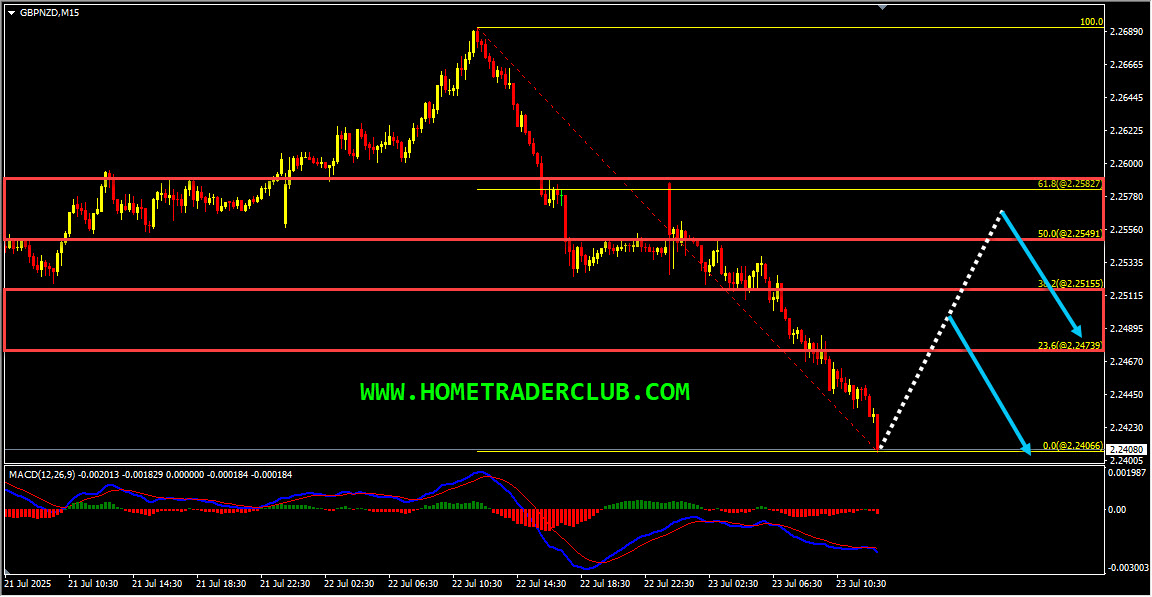 GBPNZD – My idea here was “On the M15 chart, we could see that currently we have a strong bearish momentum here as well. Also while measuring this strong bearish move we have two key resistance zones that has formed. The first key resistance zone is formed based on the 23.6%(2.24739) – 38.2%(2.25155) Fibonacci retracement levels of the strong bearish move. The second key resistance zone is formed based on the 50%(2.25491) – 61.8%(2.25827) Fibonacci retracement levels of the strong bearish move. Until both these key resistance zones shown in the image below (marked in red) holds my short term view remains bearish here and I expect the price to move lower further after pullbacks”.