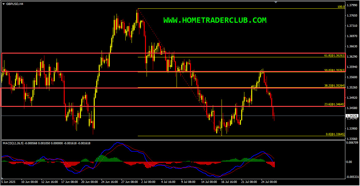 GBPUSD – My idea here was “On the H4 chart, we could see that currently we have a strong bearish momentum here as well. Also while measuring this strong bearish move we have two key resistance zones that has formed. The first key resistance zone is formed based on the 23.6%(1.34645) – 38.2%(1.35264) Fibonacci retracement levels of the strong bearish move. The second key resistance zone is formed based on the 50%(1.35763) – 61.8%(1.36263) Fibonacci retracement levels of the strong bearish move. Until both these key resistance zones shown in the image below (marked in red) holds my short term view remains bearish here and I expect the price to move lower further after pullbacks”.