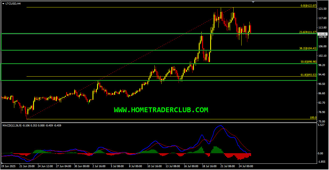 Litecoin – My idea here was “On the H4 chart, we have a strong bullish momentum here as well and also currently there are no signs opposing this short term bullish view. Also while measuring this strong bullish move we have two key support zones that has formed. The first key support zone is formed based on the 23.6%(111.17) – 38.2%(104.43) Fibonacci retracement levels of the strong bullish move. The second key support zone is formed based on the 50%(98.98) – 61.8%(93.53) Fibonacci retracement levels of the strong bullish move. Until both these key support zones shown in the image below (marked in green) holds my short term view remains bullish here and I expect the price to move higher further after retraces”.