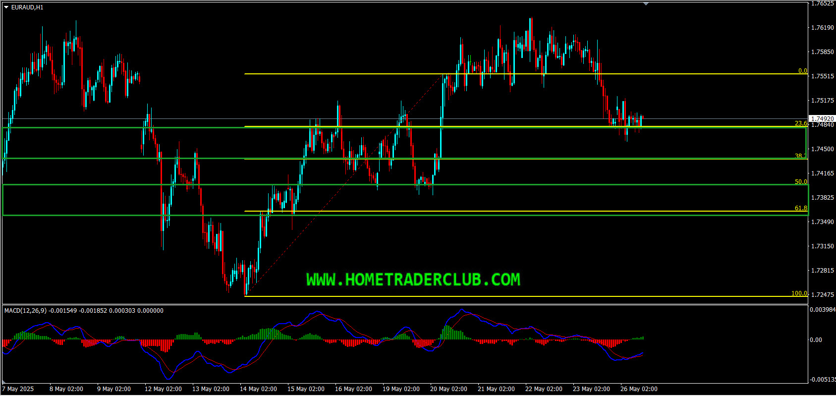 EURAUD – My idea here was “On the H1 chart, we could see that currently we have a strong bullish momentum here as well. Also, the price which is moving higher has created higher highs based on the MACD indicator, which is a sign of gaining momentum towards the bullish side. In addition to this, the ADX indicator gave a bullish signal here as well at the cross of +DI (green line) versus -DI (red line) and the main signal line (silver line) reads value over 25, we may consider this as yet another evidence of bullish pressure. Also while measuring this strong bullish move we have two key support zones that has formed. The first key support zone is formed based on the 23.6%(1.74827) – 38.2%(1.74377) Fibonacci retracement levels of the strong bullish move. The second key support zone is formed based on the 50%(1.74013) – 61.8%(1.73649) Fibonacci retracement levels of the strong bullish move. Until both these key support zones shown in the image below (marked in green) holds my short term view remains bullish here and I expect the price to move higher further after pullbacks”.
