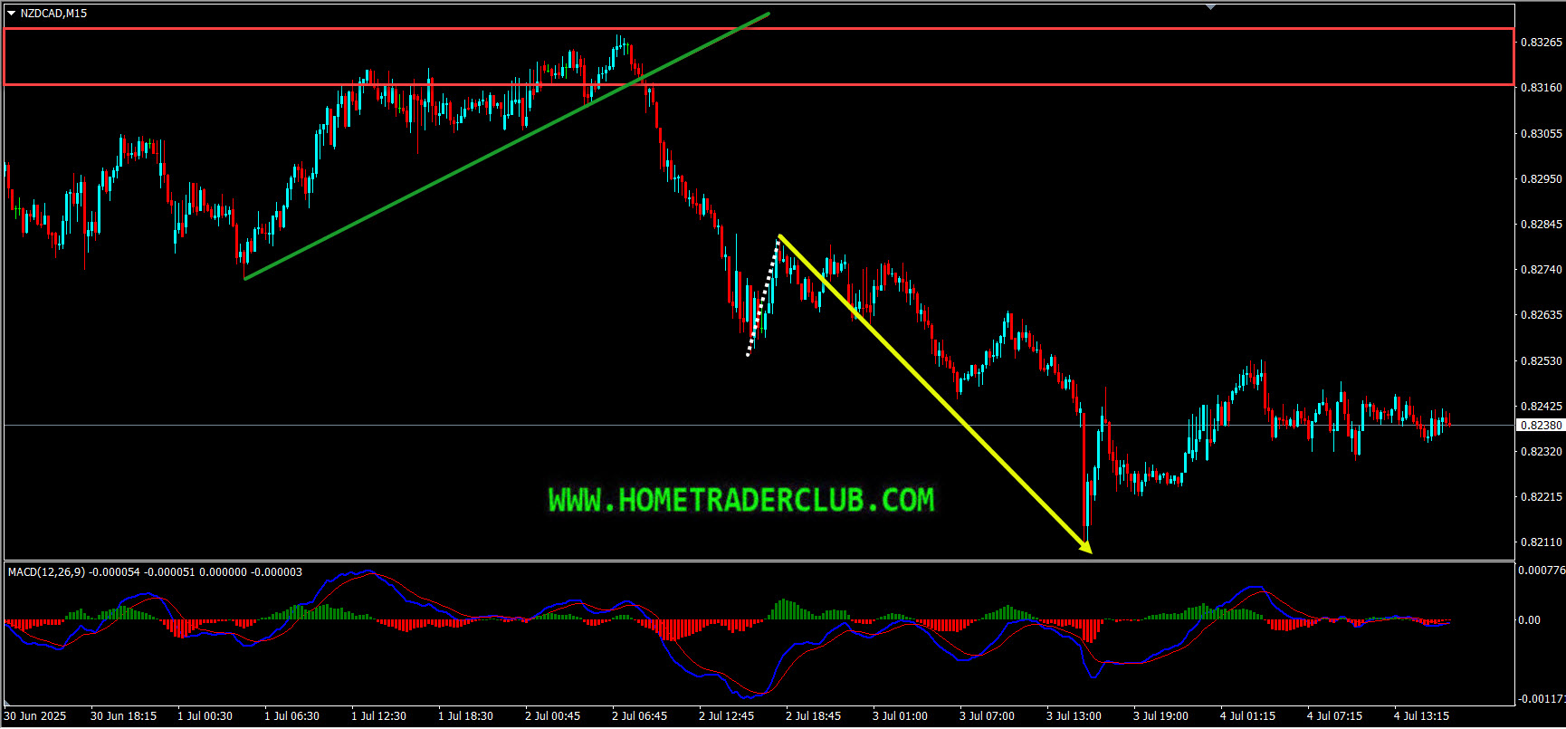 NZDCAD – My idea here was “On the M15 chart, we had a bearish divergence that has formed between the first high that has formed at 0.83214 and the second high that has formed at 0.83299 based on the MACD indicator, we may consider this as evidence of bearish pressure. The price then moved lower and broke below the most recent uptrend line, which we may consider as another evidence of bearish pressure. In addition to this, the ADX indicator gave bearish signal at the cross of -DI (red line) versus +DI (green line) and the main signal line (silver line) reads value over 25, we may consider this as yet another evidence of bearish pressure. So everything looks good here as well for the bears and until the strong resistance zone (marked in red) shown in the image below holds my short term view remains bearish here and I expect the price to move lower further after pullbacks”.